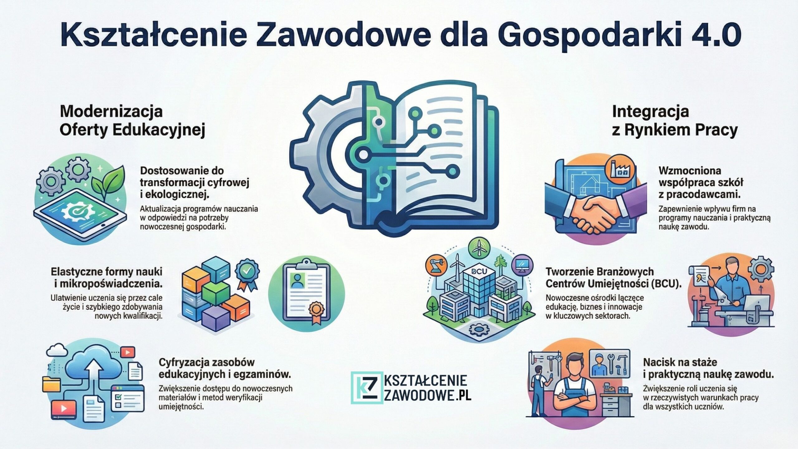 Modernizacja systemu kształcenia zawodowego stanowi jeden z kluczowych filarów strategicznych dla przyszłości polskiej gospodarki. W obliczu dynamicznej transformacji cyfrowej i ekologicznej, a także narastających wyzwań demograficznych, zdolność do elastycznego i efektywnego przygotowywania wykwalifikowanych kadr nabiera krytycznego znaczenia. Efektywny system edukacji zawodowej jest warunkiem koniecznym dla utrzymania konkurencyjności, wspierania innowacyjności oraz zapewnienia spójności społecznej. Dyskusja na temat optymalnego kierunku reform toczy się od wielu lat oraz na wielu płaszczyznach, a jej sedno można uchwycić poprzez analizę dwóch fundamentalnie ważnych dokumentów, które reprezentują odmienne, lecz komplementarne perspektywy.