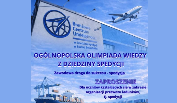 Branżowe Centrum Umiejętności w Suchej Beskidzkiej w dziedzinie spedycji zaprasza uczniów szkół ponadpodstawowych, kształcący się w zawodach, których podstawa programowa obejmuje treści związane z tematyką organizacji przewozu ładunków tj. dziedziną spedycji, do udziału w Ogólnopolskiej Olimpiadzie Wiedzy „Zawodowa droga do sukcesu – spedycja”.